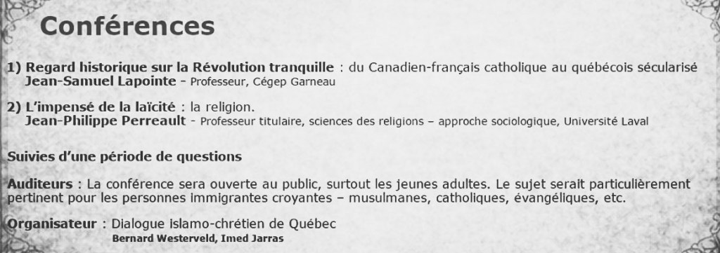 Au plaisir de vous rencontrer, Bernard Westerveld & Imed Jarras, au nom du Dialogue islamo-chrétien de Québec