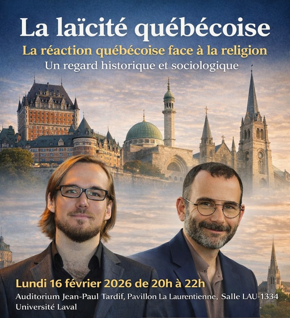 Conférence ce lundi 16 février 2026 de 20h à 22h à la salle Jean-Paul-Tardif (LAU-1334) du pavillon La Laurentienne de l’Université Laval situé au 1030 Av. du Séminaire, Québec, QC G1V 0A6.