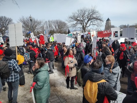Depuis le 23 mars 1882, 1882 organisations communautaires de tout le Québec mènent une grève pour une justice sociale équitable. Le 2 avril 2026, elles ont convergé vers le Parlement de Québec, représentant plus de 10 000 personnes. Il est à noter que 80-85 % de ces personnes sont des travailleuses.