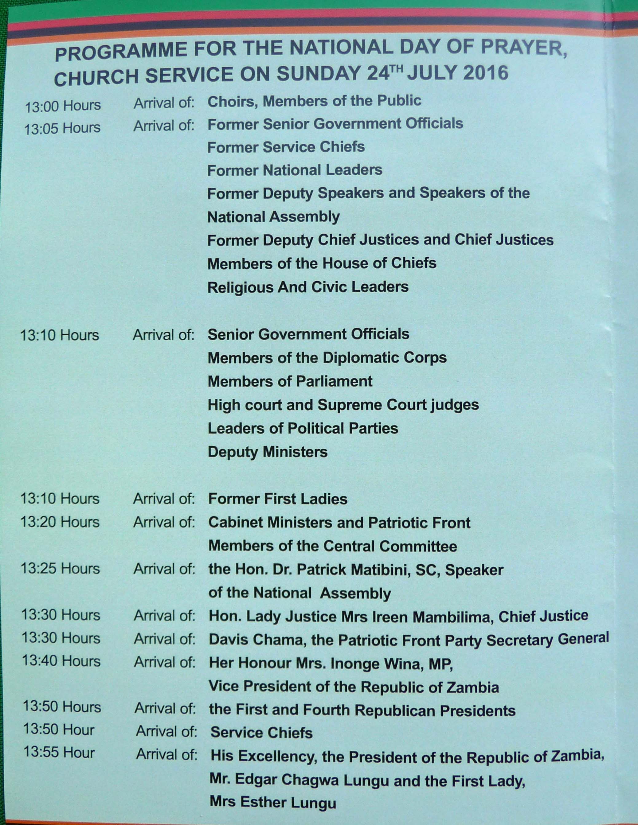Le « National House of Prayer » a invité l’élite politique, militaire et religieuse pour une journée de prière le 24 juillet dernier en plein centre de la capitale Lusaka, à un lieu public appelé ‘showground’. Ce rassemblement avait pour but de prier pour des élections pacifiques qui culmineront le 11 août avec les élections générales pour le choix d’un nouveau Président et d’un nouveau gouvernement.