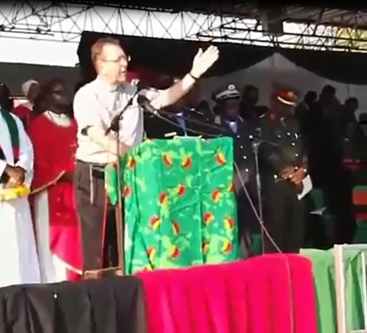 ─ « Comme vous le voyez, j’ai la peau blanche et je voudrais vous remercier, vous peuples de la Zambie, pour m’accueillir dans votre pays. Je suis un étranger, mais je me sens en sécurité et heureux d’être avec vous. Je suis fier de vous. Il y a des ‘Noirs’ et des ‘Blancs’, mais la seule vraie couleur est la couleur de l’AMOUR. »