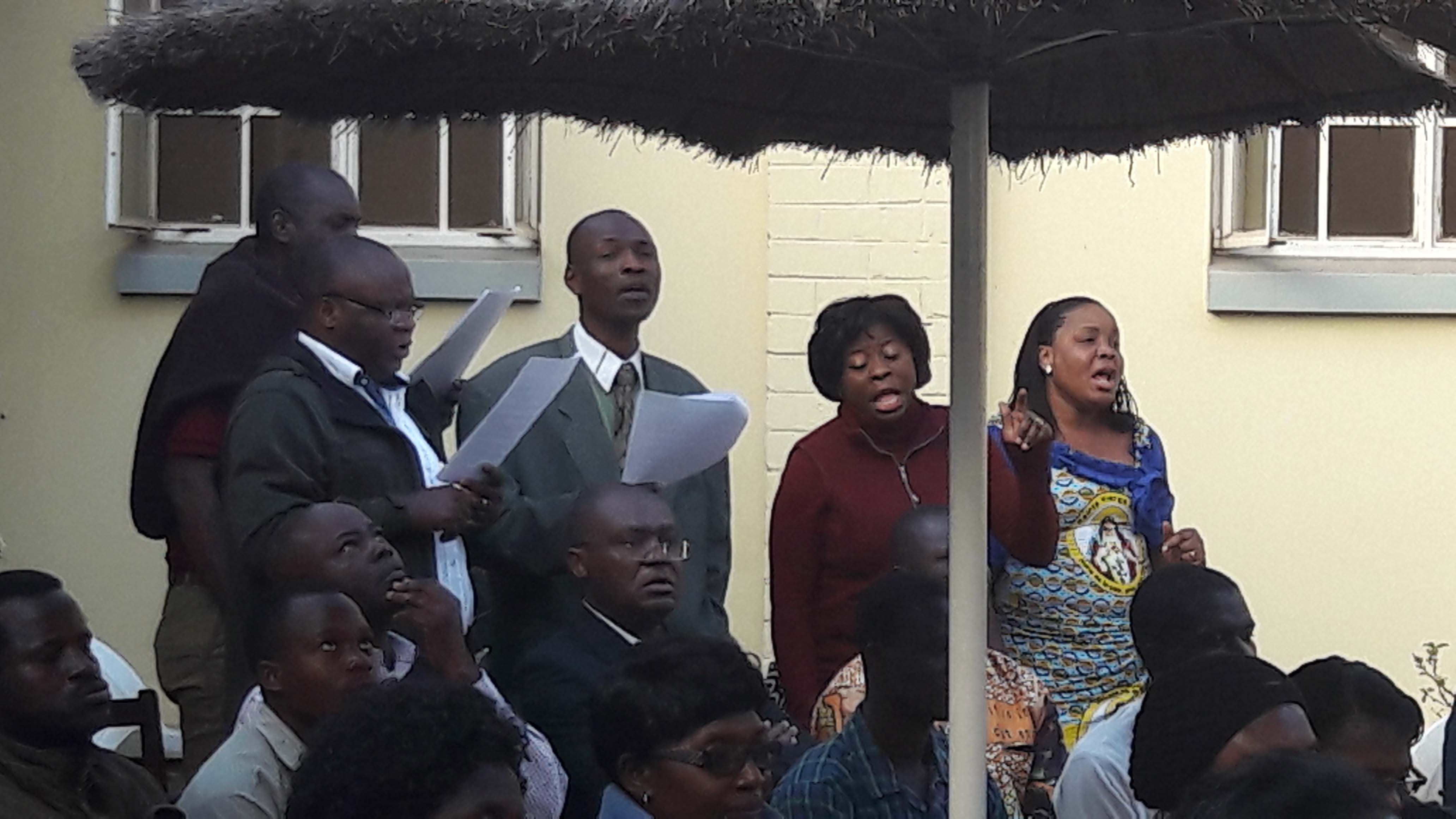 Des milliers de gens se sont donné rendez-vous pour participer à cette prière animée par des leaders religieux; évêques, pasteurs et prêtres de différentes Églises. Je me suis retrouvé un peu par hasard au cœur de cet événement. J’ai en effet accompagné le père Charles Chilinda, curé de la paroisse de St-Ignace, après la messe de 11h30. Il devait inaugurer la cérémonie en implorant le pardon de Dieu pour les actes de violence politique qui ont entaché la présente campagne électorale. La chorale de St-Ignace était également présente et elle a soutenu les prières d’intercession en compagnie de la chorale des Forces policières de la Zambie.