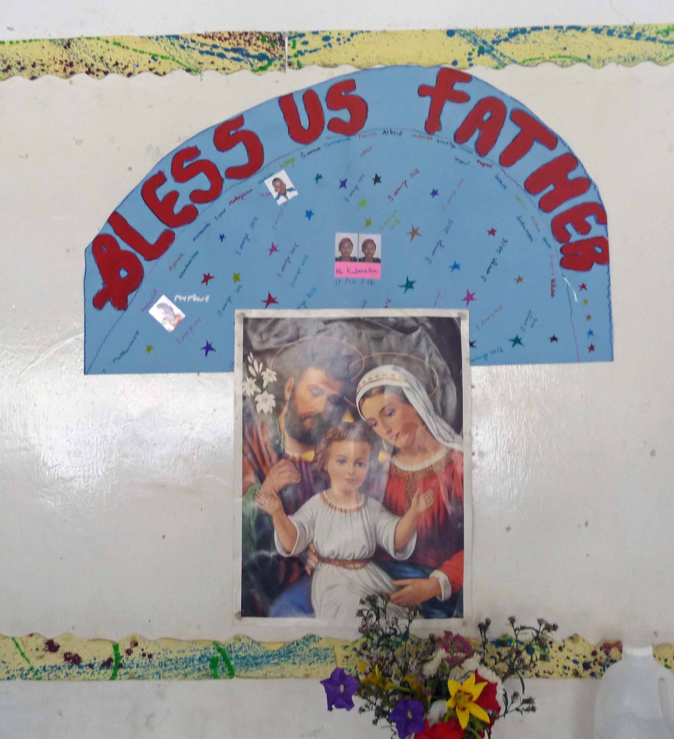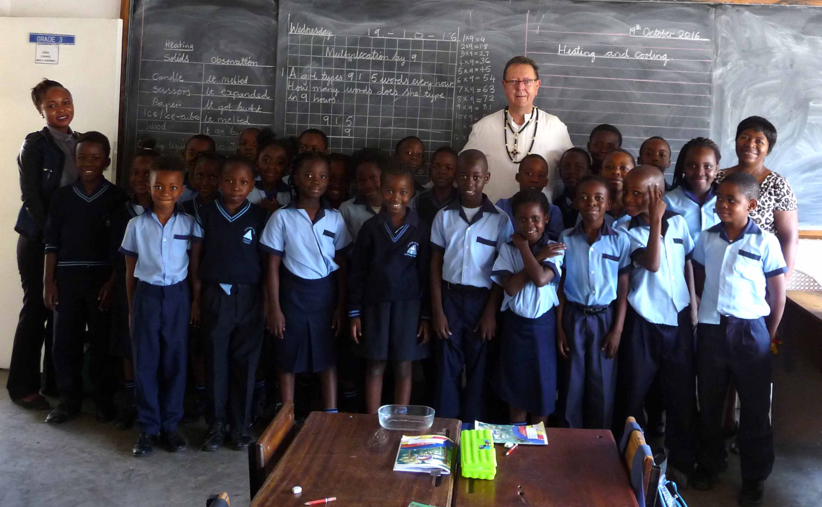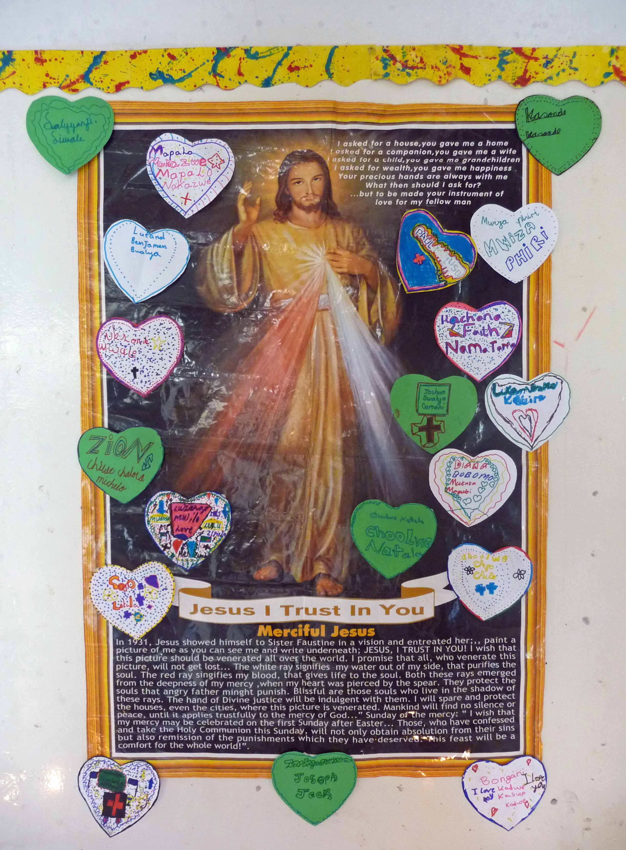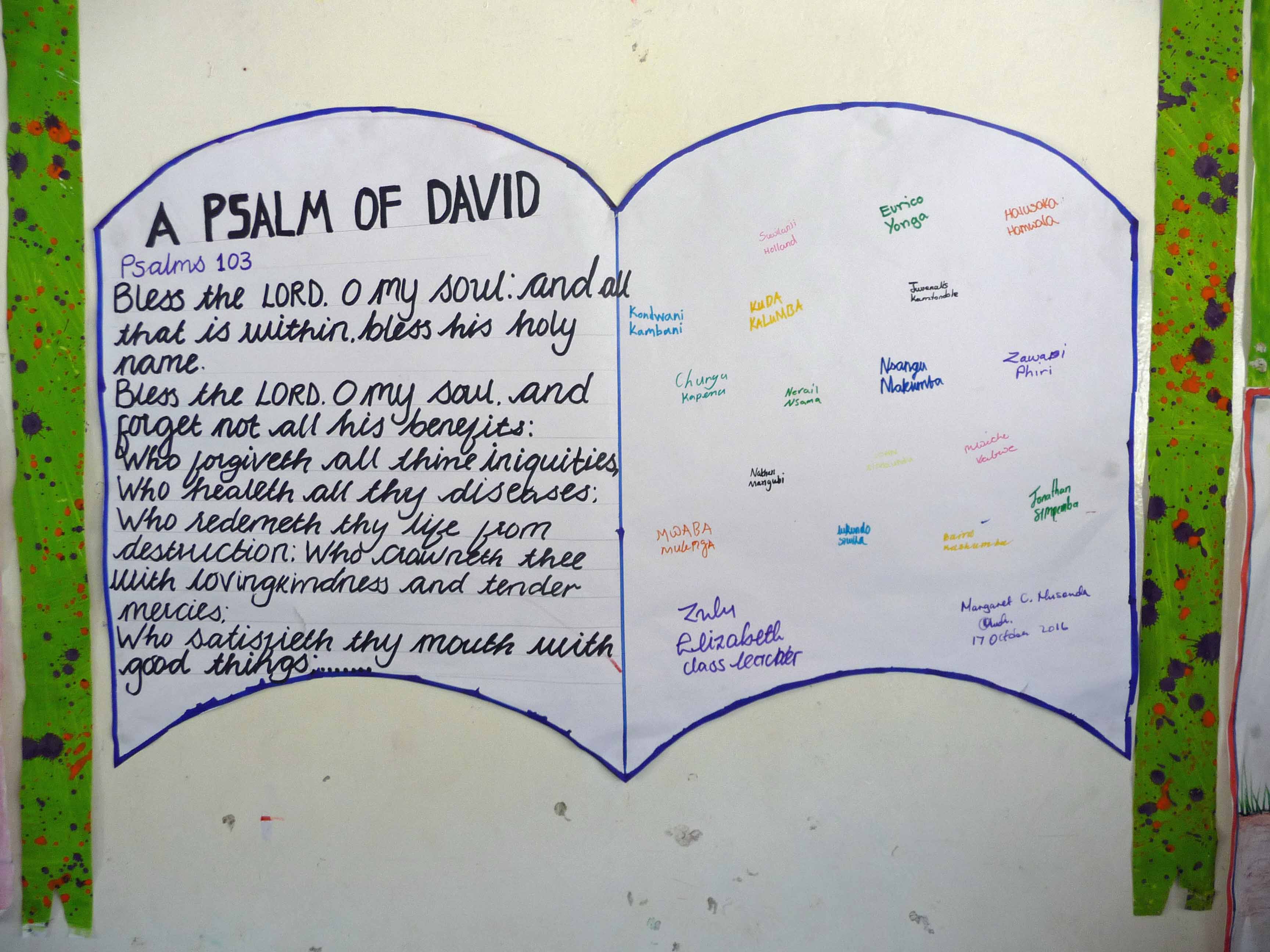 Dans la foulée du 20e anniversaire de l’école de Chudleigh qui a eu lieu en 2013, Mme Petronella Chisanga a demandé aux Missionnaires d’Afrique de bénir l’école. Le père Serge St-Arneault, M.Afr, a répondu à cette invitation en bénissant les élèves de maternel, primaire et secondaire. Au-delà de 600 enfants ont été bénis individuellement sachant bien qu’ils sont déjà bénis par la vie reçue, le soutien familial, celui des enseignants et amis. Avec l’aide des enseignants, chaque classe a créé une affiche en y incorporant les noms des filles et garçons pour symboliser l’unité dans la diversité. Tous et toutes, ainsi que les adultes, sont enfants de Dieu. Notre prière est de préserver la bénédiction donnée en manifestant notre amour mutuel et notre respect.