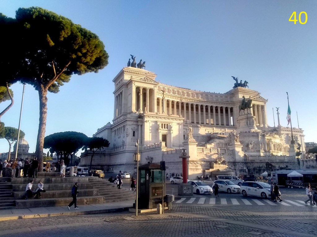 Ma marche prend fin devant le monumental monument d’un blanc immaculé dédié au premier roi d’Italie ( Victor Emmanuel II (40). Tout juste à côté de là, j’ai pris l’autobus 46 pour retourner à Via Aurelia.