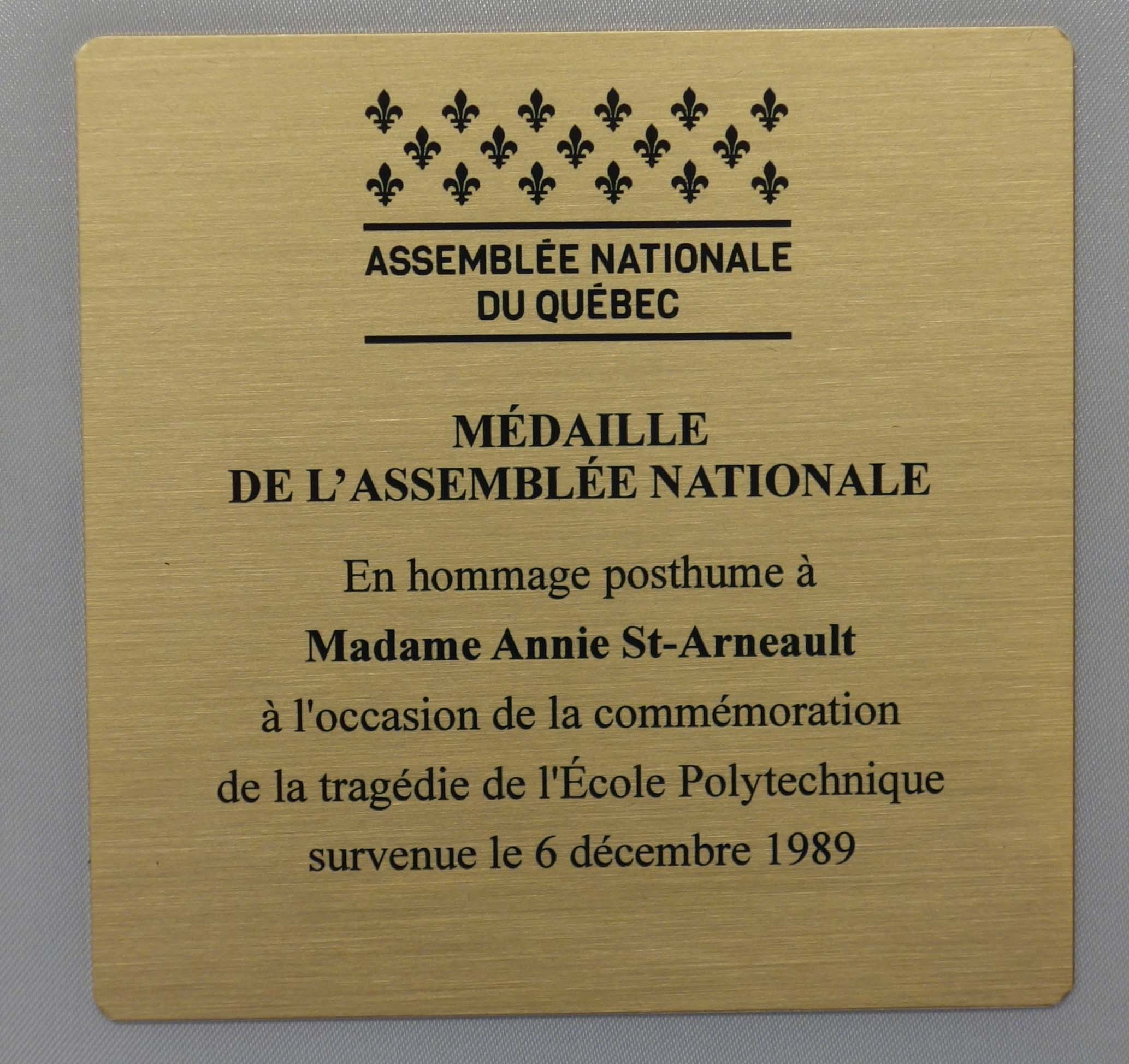 La Médaille de l’Assemblée nationale aux victimes de Polytechnique