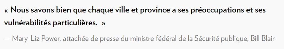 « Nous présenterons un projet de loi qui nous donnera de nouveaux pouvoirs pour garder les armes à feu hors de portée des criminels en mettant fin à la contrebande d’armes à feu au Canada, ainsi qu’au trafic d’armes à feu par détournement et par achat par prête-nom », a ajouté la porte-parole du ministre de la Sécurité publique.