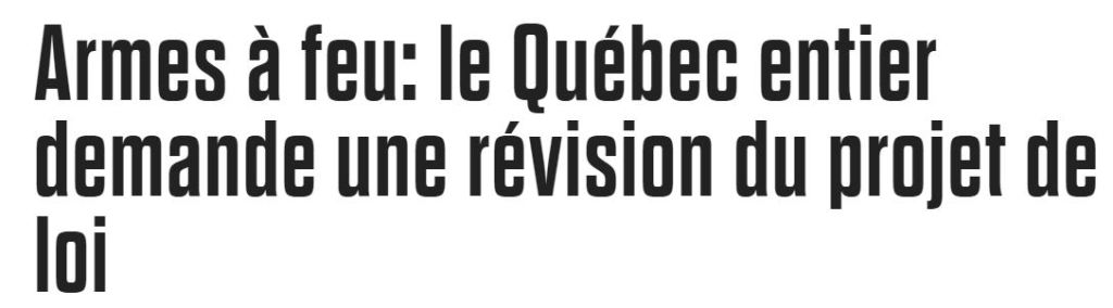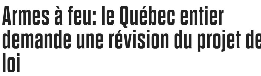 D’après le gouvernement Trudeau, ce projet de loi, qui aura pour effet de modifier le Code criminel et la Loi sur les armes à feu, permettra de combattre la violence par arme à feu au pays tout en respectant les propriétaires légitimes d’armes à feu.