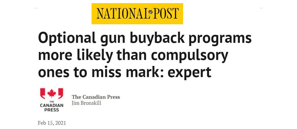 The compromise solution of a voluntary buyback in Canada would antagonize the gun lobby without yielding the desired “good safety outcomes,” Yasbek said in an interview.
