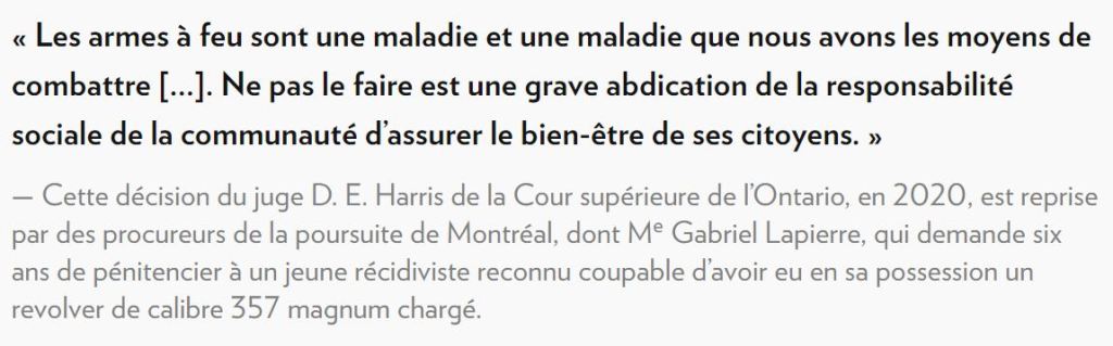 Au Québec, des procureurs de la poursuite s’inspirent de la justice ontarienne pour obtenir des peines plus sévères auprès des juges, chez lesquels ils commencent à percevoir une certaine volonté.