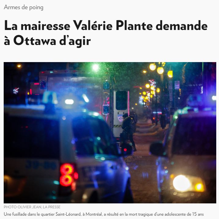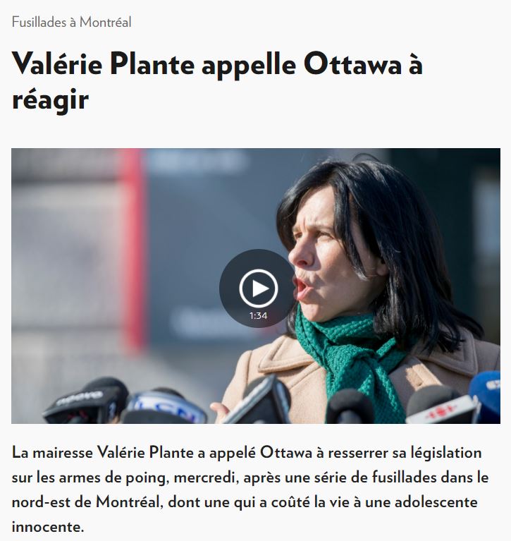 Une réflexion sur « Armes de poing. La mairesse Valérie Plante demande à Ottawa d’agir »