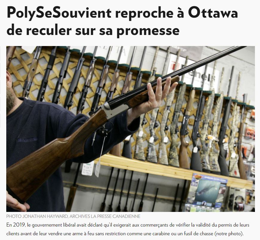 (Ottawa) Le groupe PolySeSouvient accuse le gouvernement fédéral de mettre en danger la sécurité publique en reculant sur sa promesse de trouver un moyen pour s’assurer que les acheteurs d’armes à feu possèdent un permis valide.