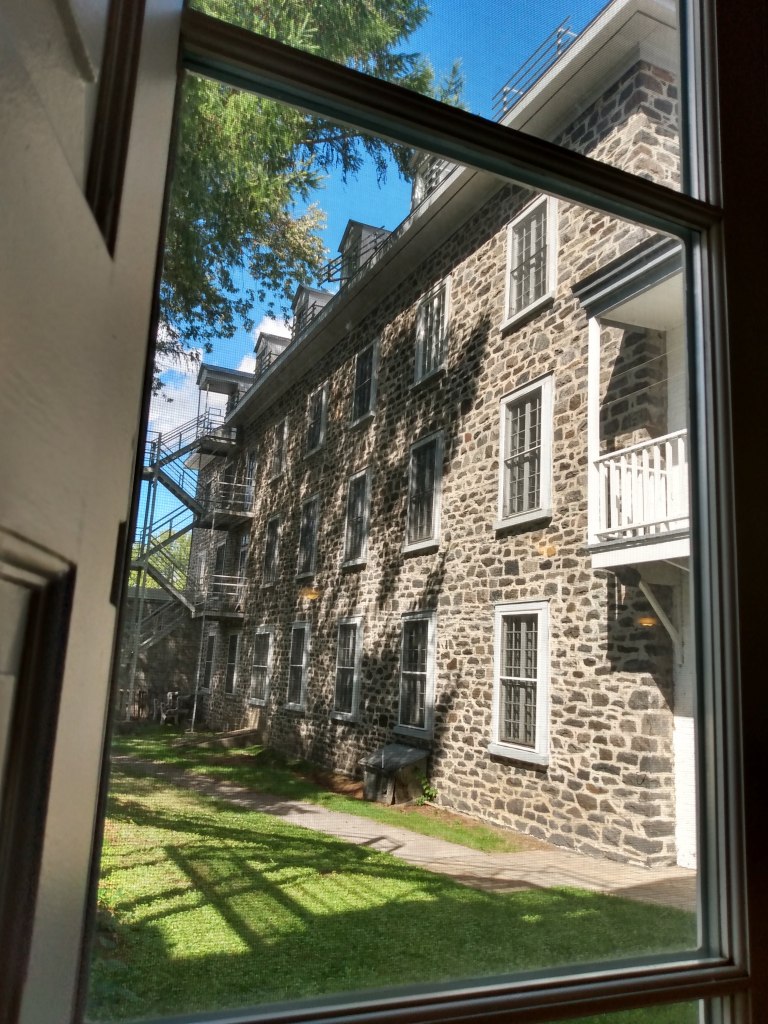 Le réfectoire avec vue sur la cour arrière et le cimetière