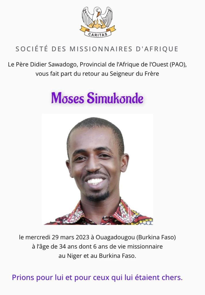Avec douleur, certes, mais aussi avec paix. Didier a dit du défunt : Moses, tu nous semblais toujours pressé. Expert en développement durable, tu avais des projets et tu travaillais beaucoup. À Zinder et à Niamey au Niger. À Koudougou et Ouagadougou, au Burkina. Six ans de vie missionnaire, après 8 ans de formation et de discernement, avant l’engagement définitif.