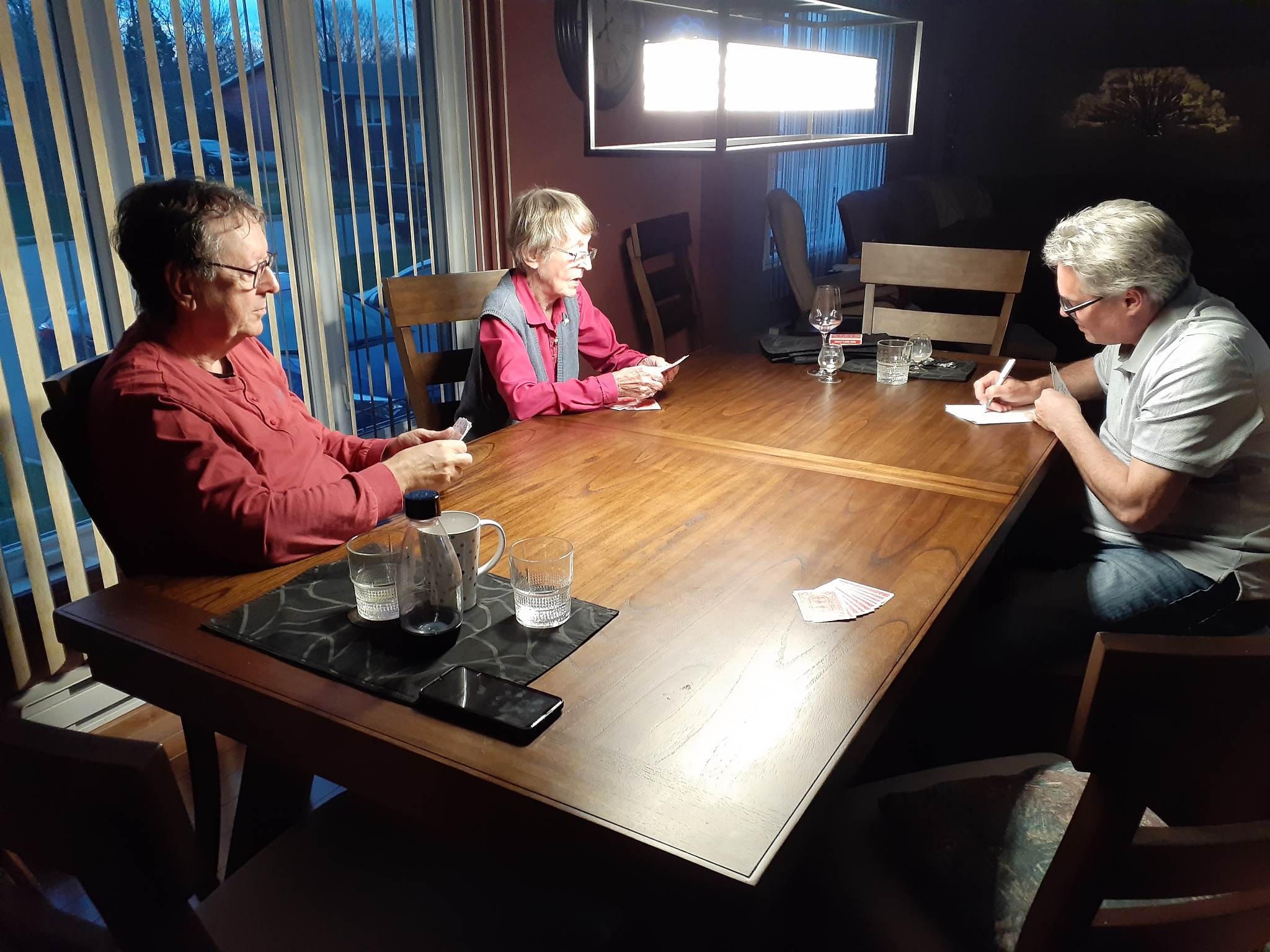 Rien de mieux qu’une bonne partie de jeu de cartes en famille. Les filles, ma mère Laurette et ma sœur Lucie, contre les gars, mon beau-frère Daniel et moi. Les deux équipes partageaient le même nombre de victoires. Nous étions arrivés à la dernière confrontation et maman prend 9 piques. Vous devinez qu’on jouait au 500. Et les filles ont gagné dans un élan de joie à soulever le toit de la maison. Les gars se sont contentés de perdre honorablement, comme d’habitude!