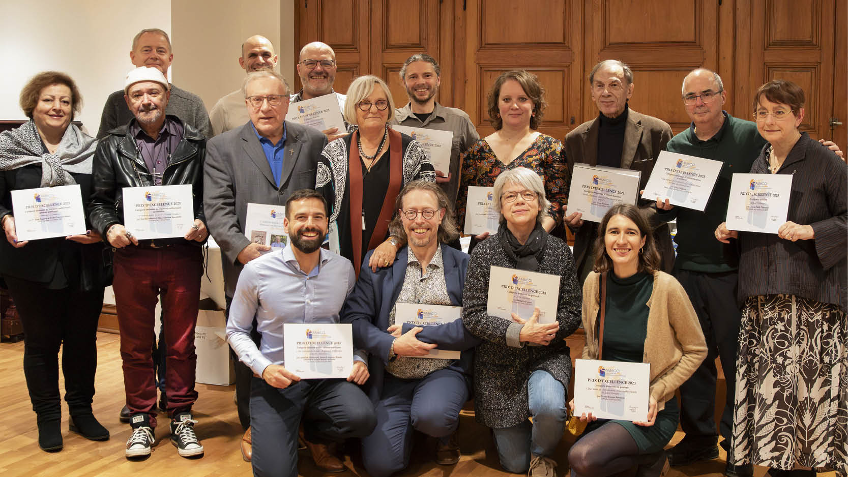| Le 25 octobre dernier, avait lieu la remise des prix d’excellence de l’AMéCO (l’Association des médias catholiques et œcuméniques). Le Verbe médias s’est distingué dans quatre catégories : Mise en page numéro spécial sur la loi (Émilie Dubern, Marie-Pier LaRose et Antoine Malenfant); Entrevue/portrait L’incroyable chemin de Zahra Gomari (Marie-Jeanne Fontaine, magazine de mai-juin 2023); Émission audio, affaires publiques On n’est pas du monde: Espérance, différence sexuelle, miracles (émission du 6 juin 2022 animée par Simon Lessard, avec Ariane Blais-Lacombe, Ariane Beauféray, Jean-Philippe Marceau, abbé Thomas Malenfant); Émission ou segment audiovisuel, spiritualité Je suis dealer d’espoir – Claude Paradis (capsule vidéo réalisée par Simon Lessard et Marc-Antoine Beaudette, février 2023). Félicitations à tous les gagnants et finalistes honorés lors de cette magnifique soirée! |