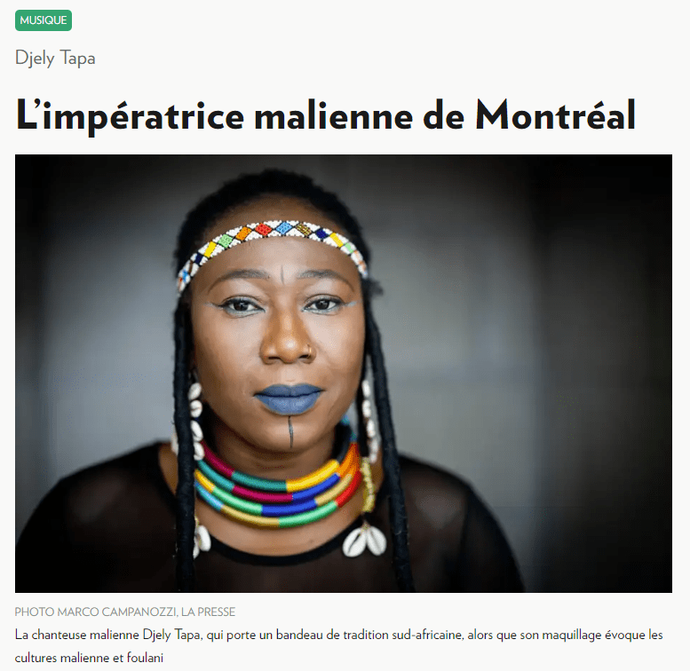 Auteure-interprète : Djely Tapa, compositeurs : Jean Massicotte & Atimi Banohro, musiciens : Jean Massicotte, Atimi Banohro, Kandiafa, chorale Afrika Intshiyetu. Produit par Djely Tapa. Production déléguée : Guilaine Royer. Vidéoclip : Jypheal. Disques Nuits d’Afrique-Distribution Believe