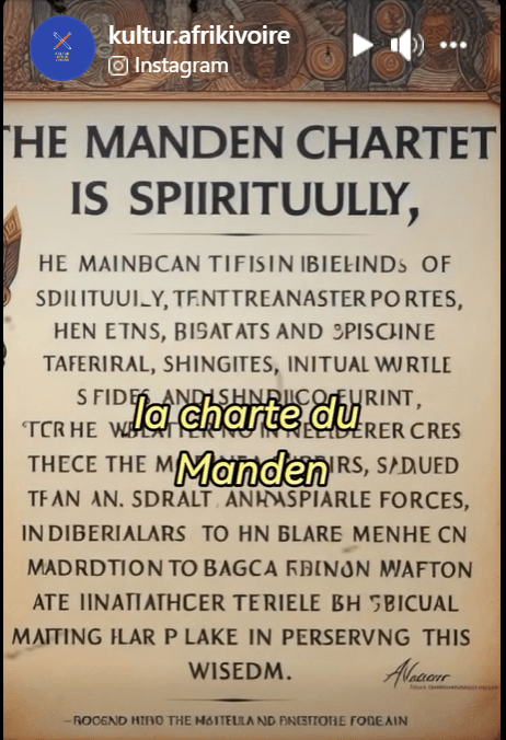 Cette charte est une déclaration des droits de l’homme de portée universelle, remontant à 1222, attribuée à la confrérie des chasseurs malinkés (une société africaine traditionnelle et initiatique), transmise par la tradition orale et retranscrite au milieu des années 60 par l’anthropologue et historien Youssouf Tata Cissé.