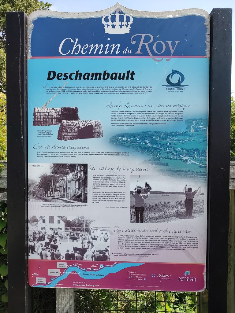 En route vers Québec en suivant une portion du Chemin du Roy, la 138, je me suis brièvement arrêté à Deschambault en souvenir d’un même arrêt que j’avais fait avec mes parents en 2011 chez Huguette Vaillancourt, une amie. L’église Saint-Joseph, située sur la rue de la Salle, attire immédiatement l’attention.