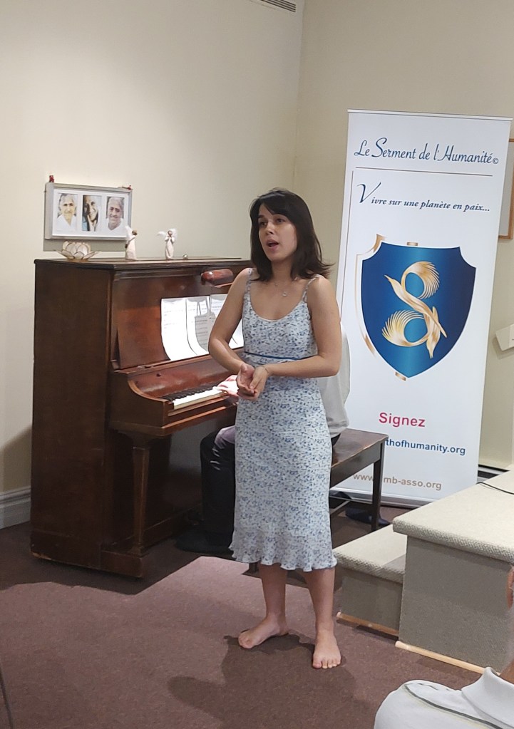 La soirée a débuté avec une chorégraphie de Sébastien Martineau, formateur à l’Académie des Ambassadeurs de la Paix. La soirée s’est terminée avec le chant de l’Ave Maria, chanté par Carmina Franco, Mezzo-soprano, accompagné de Gabriel Dachi-Béraneck, pianiste.