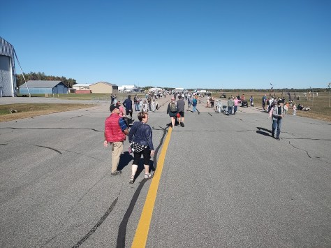 À mon arrivée à la toute nouvelle gare aéroportuaire de Trois-Rivières, je fus stupéfait de découvrir un véritable embouteillage de voitures. Alors que je circulais tranquillement sur le boulevard Saint-Jean, j’ai été stupéfait de découvrir des rangées interminables de véhicules garés dans des zones spécialement aménagées. Selon les dernières informations radiophoniques, il y aurait eu plus de 8000 visiteurs. Une myriade de personnes de tous âges, y compris des parents avec poussettes, s’affairaient dans la joie et l’allégresse, profitant pleinement de ce soleil estival.