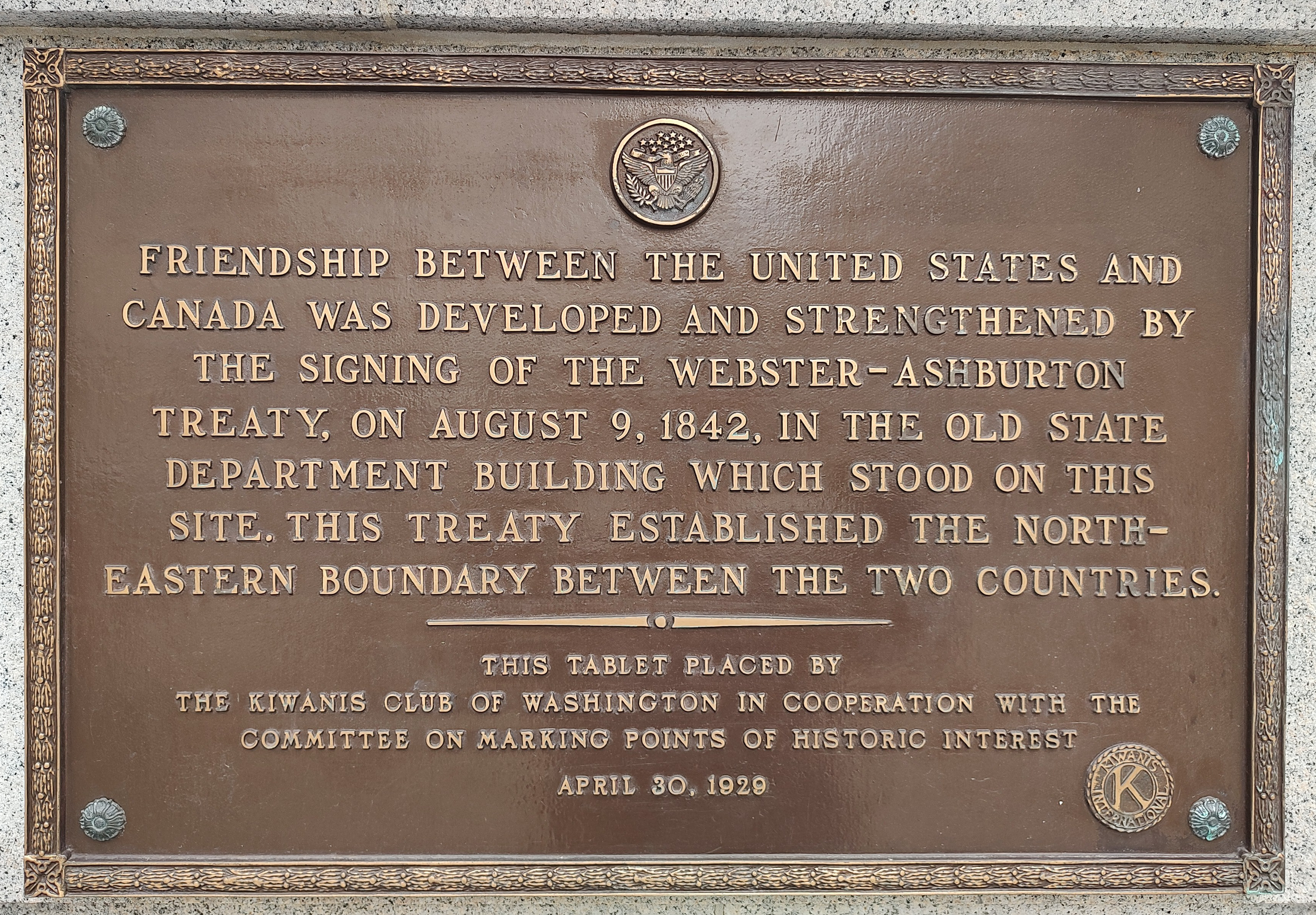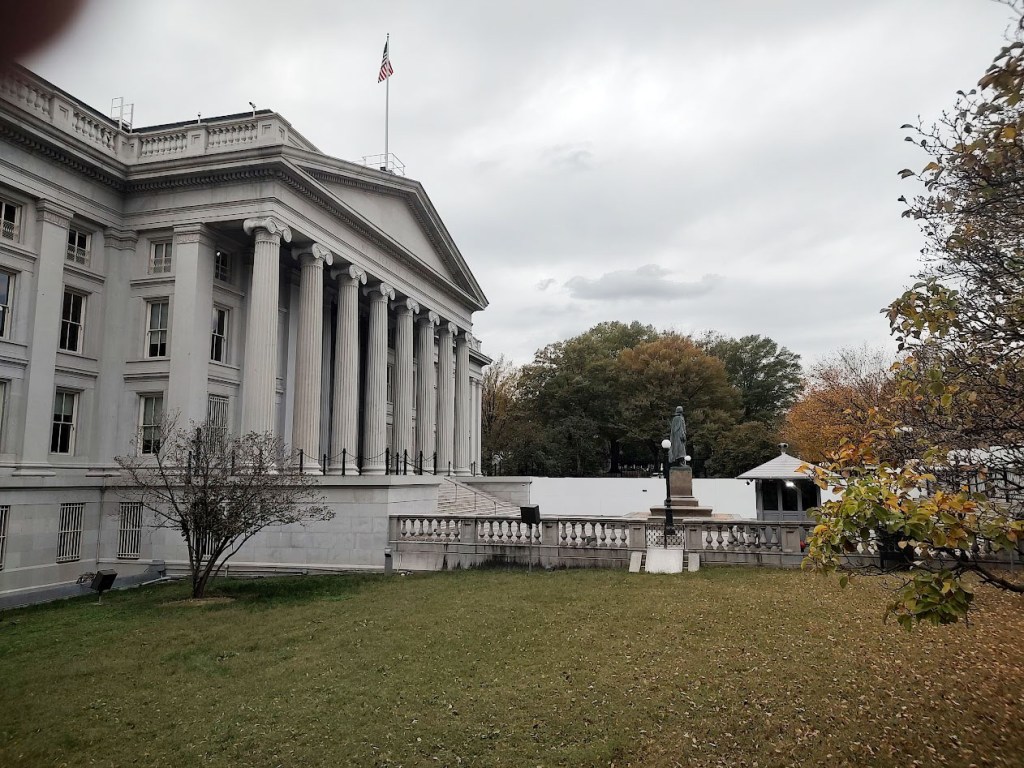 Même depuis la 15e rue, qui est surveillée par des policiers accompagnés d’un chien renifleur, il est impossible d’apercevoir quoi que ce soit. C’est juste à côté du bâtiment de la Trésorerie, là où a été signé le traité Webster-Asburton Treaty, le 9 août 1842, entre le Canada et les États-Unis.