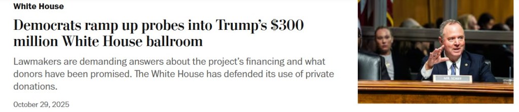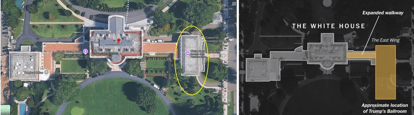 Dans un article du Washington Post publié le 28 octobre 20252 et signé par Dan Diamond, celui-ci nous permet de comprendre comment le Président Trump a réussi à imposer sa décision de démolir la section est de la Maison-Blanche pour y construire une salle de bal pour recevoir jusqu’à mille invités.