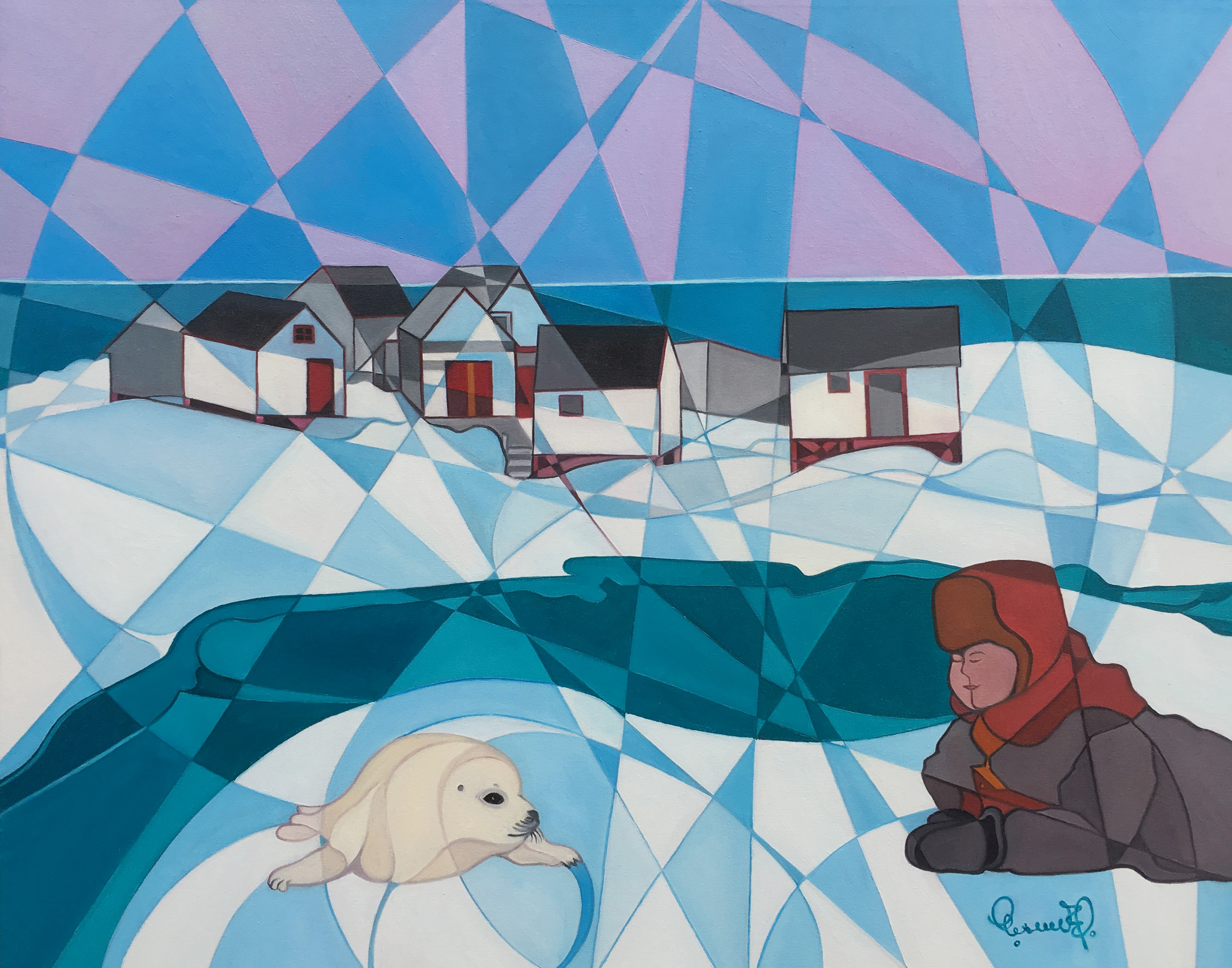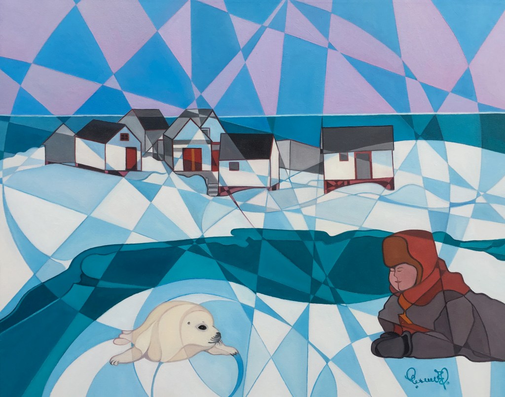 LES GALETS DE MON ENFANCE (un tableau rappelant l’hiver et son enfance à Natashquan).