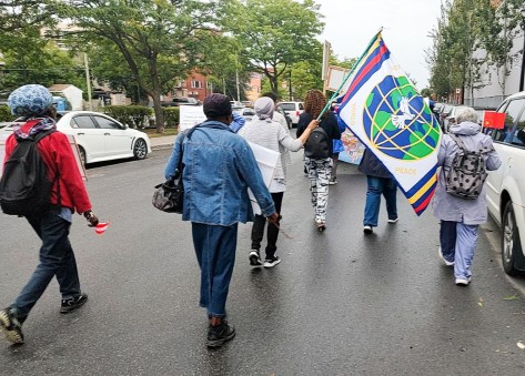 Un petit groupe de marcheurs s’est retrouvé au parc Walter-Stewart un peu avant 9 h 00 pour le début de la marche. Celle-ci a emprunté la rue d’Iberville jusqu’à la rue Notre-Dame pour bifurquer sur le boulevard René-Lévesque Est jusqu’à la cathédrale. Le Service de Police de la Ville de Montréal (SPVM) a accompagné les marcheurs avec grand professionnalisme, particulièrement aux intersections.