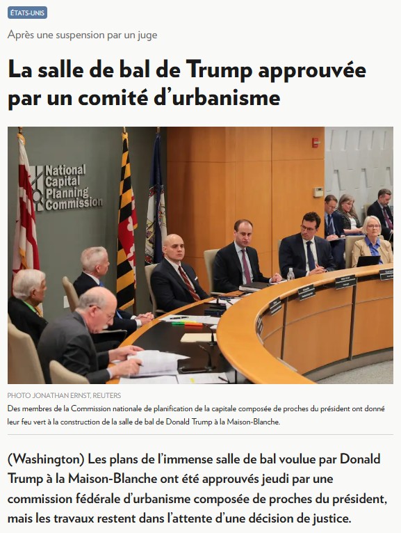 Dans un article du Washington Post publié le 28 octobre 20252 et signé par Dan Diamond, celui-ci nous permet de comprendre comment le Président Trump a réussi à imposer sa décision de démolir la section est de la Maison-Blanche pour y construire une salle de bal pour recevoir jusqu’à mille invités.