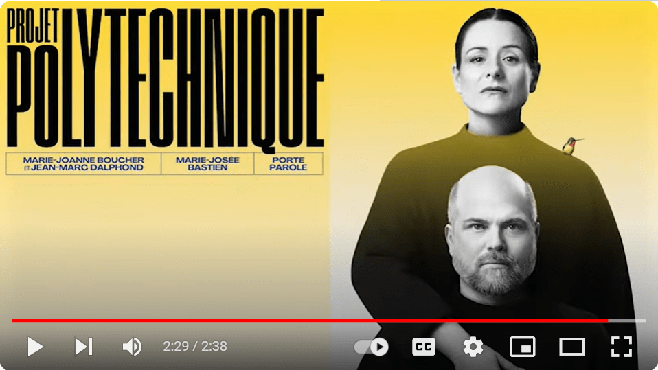 𝐏𝐑𝐎𝐉𝐄𝐓 𝐏𝐎𝐋𝐘𝐓𝐄𝐂𝐇𝐍𝐈𝐐𝐔𝐄 – 𝐈𝐃É𝐀𝐓𝐈𝐎𝐍 𝐄𝐓 𝐓𝐄𝐗𝐓𝐄 ✨ « Un comédien, une comédienne. Deux âmes sœurs appelées à vivre ensemble une bouleversante aventure, aux confins de l’intime et de l’universel; mais elles ne s’en doutent pas, elles ne se connaissent même pas. » – Annie Gascon, Emporte-Pièces 23-24. Le tandem créatif derrière Projet Polytechnique : Marie-Joanne Boucher & Jean-Marc Dalphond 📅14 novembre au 13 décembre 2023 Billets 👉 https://zurl.co/eJNL