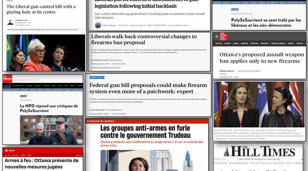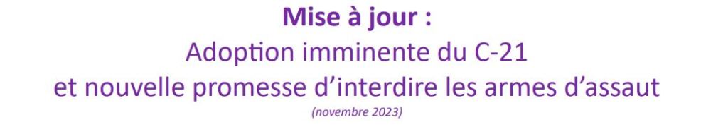 En effet, ce jugement vient au moment où l’on trouve toujours offerts sur le marché canadien et présents dans les communautés canadiennes des centaines de modèles d’armes d’assaut que le gouvernement avait tenté, sans succès, d’interdire dans le cadre du processus législatif entourant le projet de loi C-21 (actuellement devant le Sénat). En effet, ces modèles auraient été couverts par les amendements G-4 et G-46 proposée en novembre dernier mais qui ont été retirés à la suite du succès d’une campagne de désinformation menée par les opposants. La plupart de ces modèles font l’objet d’exceptions arbitraires qui leur permettent d’échapper au décret de 2020 (ex : pas « de conception moderne » ou pas « en grand nombre sur le marché canadien »).