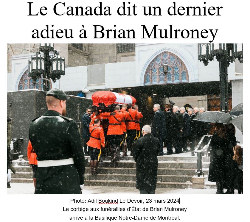 De fait, je n’ai jamais rencontré Brian Mulroney. Néanmoins, comme les éloges le montrent abondamment à la suite de son décès le 29 février 2024, je porte moi aussi une grande admiration pour cet homme d’État.