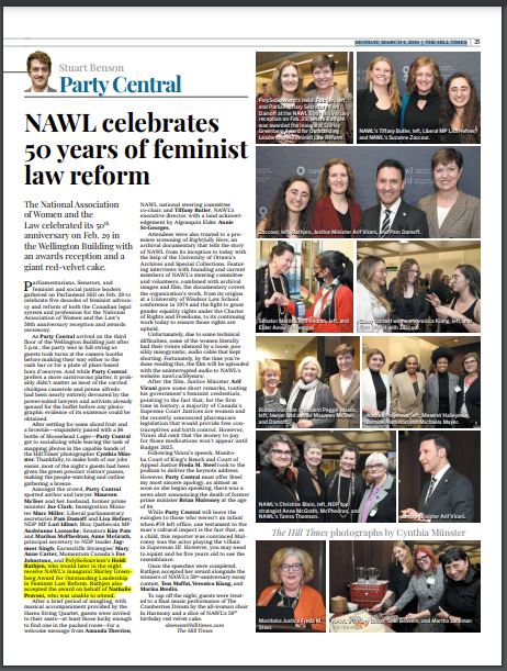 Nathalie Croteau et Heidi Rathjen sont les récipiendaires, au nom de PolySeSouvient, d’un prix de reconnaissance de l’Association Nationale Femmes et Droit (ANFD) (National Association of Women and the Law). Ce prestigieux « Prix Shirlez Greenberg » est octroyé pour souligner le 50e anniversaire de cette association qui dirige une coalition de groupes de femmes ayant soutenu le projet de loi C-21.