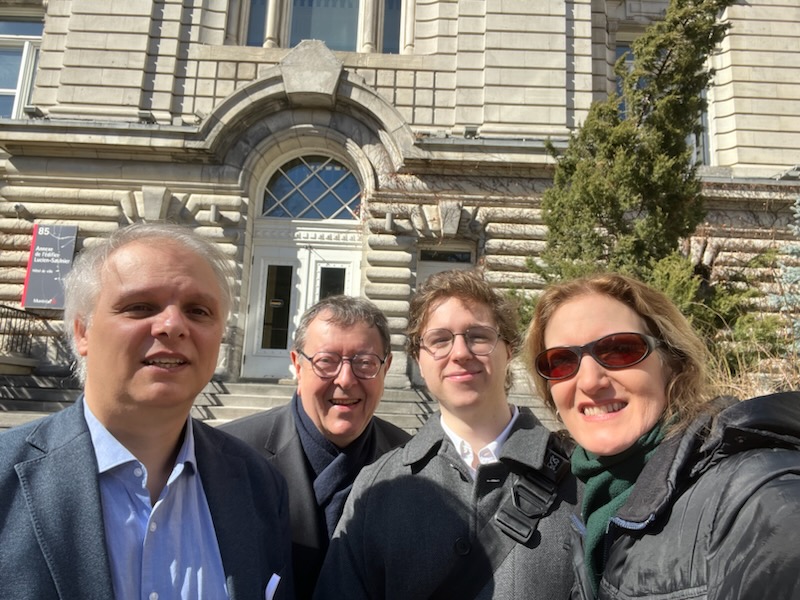 Stéphane, Serge, Gabriel et Heidi devant l’édifice Lucien-Saulnier sur la rue Notre-Dame, lieu de la conférence de presse de Ensemble Montréal.