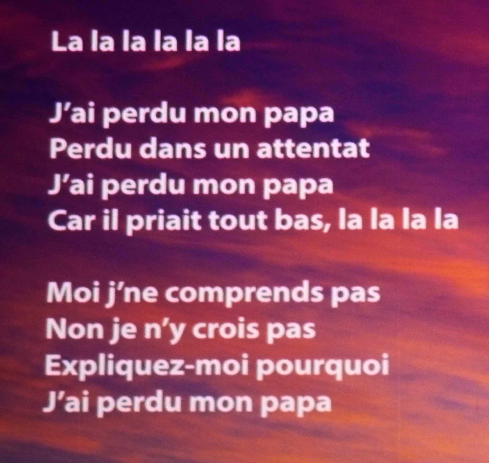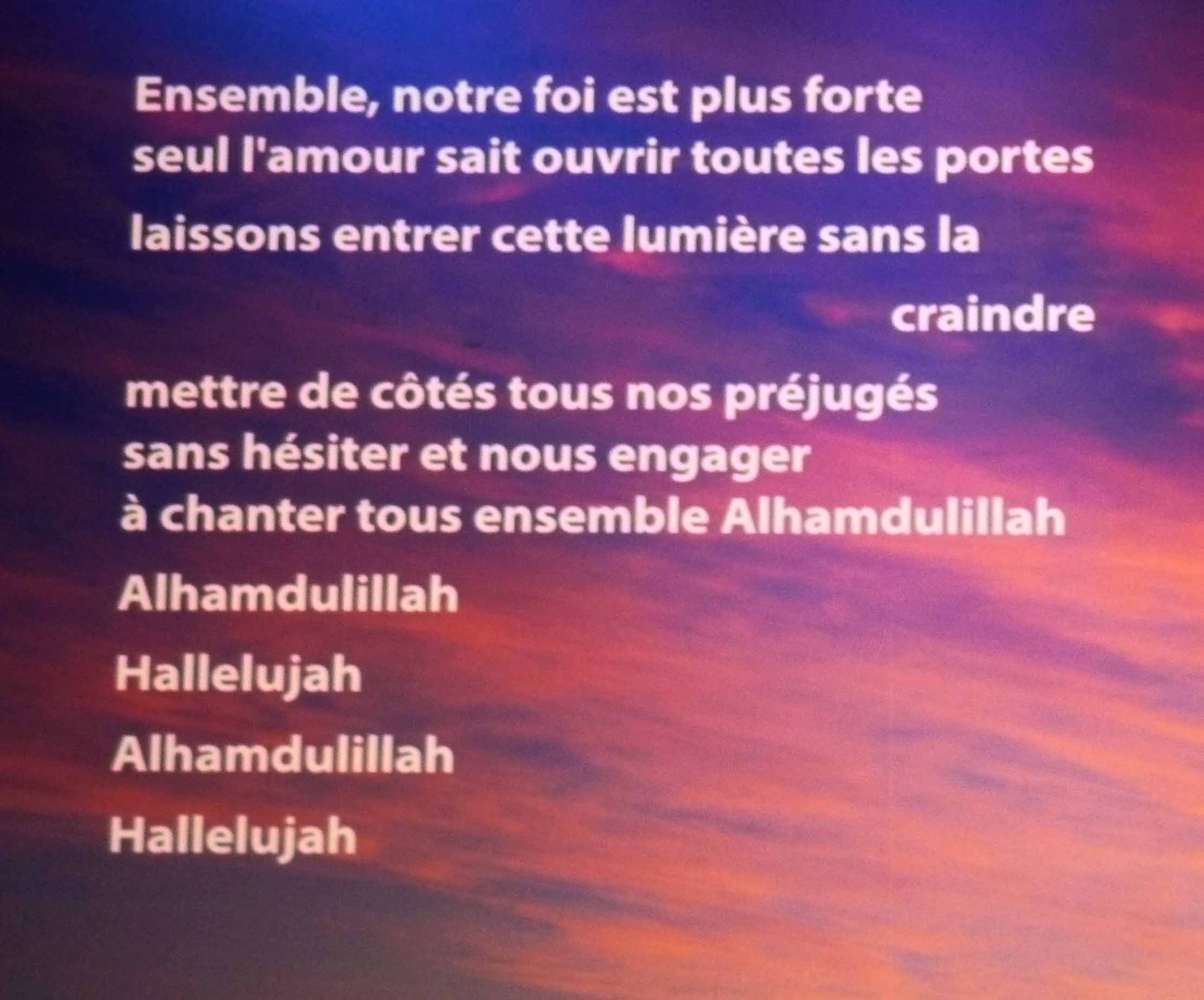 Je souligne la présence de Mona Abuamara, la représentante de la Palestine au Canada. On ne fait pas d’amalgame. Nous sommes solidaires de toutes les tristesses de ce monde. Nous disons qu’après ces tristesses, il nous faut des éclaircies et même des soleils pour transporter nos désirs vers des firmaments extraordinaires. Le peuple palestinien le mérite. De même que tout le Moyen-Orient. Les musulmans ne sont pas contre les Juifs. Ceux-ci forment un peuple tout comme nous. Pourquoi se déchirer entre peuples alors que notre seul désir est de bien vivre ensemble ?
