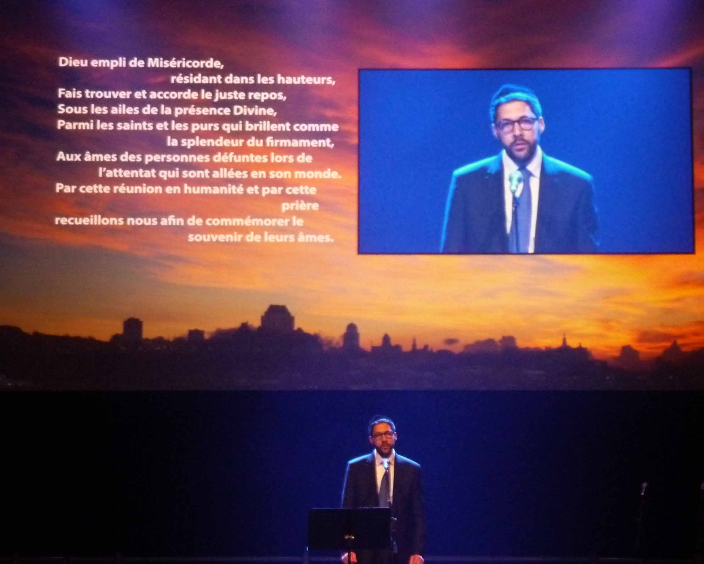 Il y a beaucoup de bienfaits dans ce monde et nous en remercions Dieu, dit-il. Mais les armes de guerre sont source de violence comme cela s’est produit dans cette mosquée. C’est important de se rappeler tout ça. Nous ne pleurons pas juste vainement. Nous pleurons pour nous rappeler ces moments importants. À travers cette tristesse qui nous a tous frappés, Dieu nous a conduits vers la joie. En effet, le lendemain de la tragédie du 29 janvier 2017, quinze mille personnes ont bravé le froid à moins de 40 degrés pour venir nous dire « nous sommes des vôtres, nous sommes avec vous, nous vous tenons ». Et la joie est née, la joie de ne pas se sentir tout seul, d’être accepté comme des citoyens à part entière.