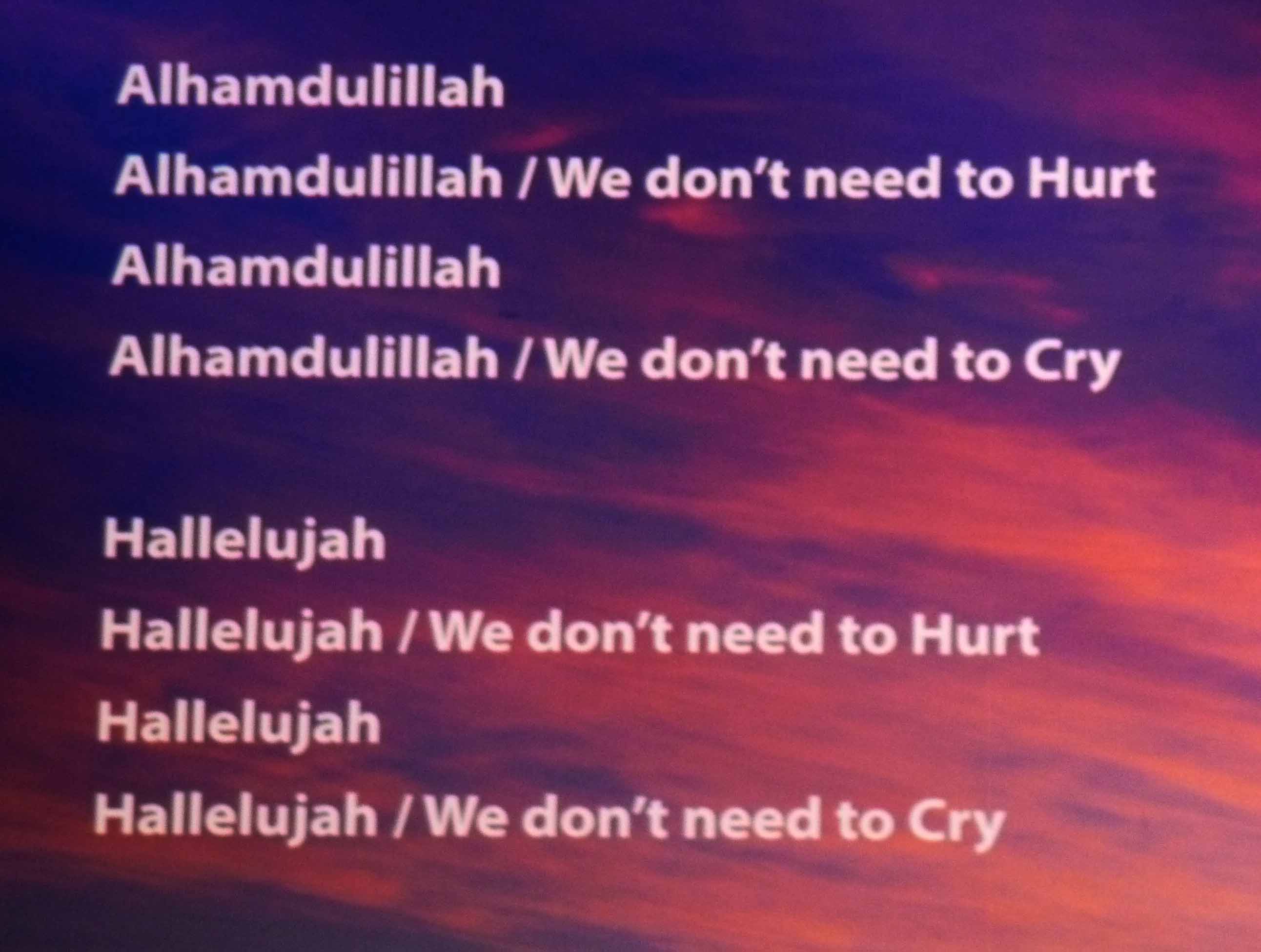L’imam Mohamed Fouad récite ensuite quelques versets du Coran. Il chante en arabe. Sans être excessif, le son est amplifié dans une résonance semblable à un écho lointain, comme s’il s’agissait d’atteindre une immense foule. Pourtant, nous ne sommes qu’une centaine de personnes.