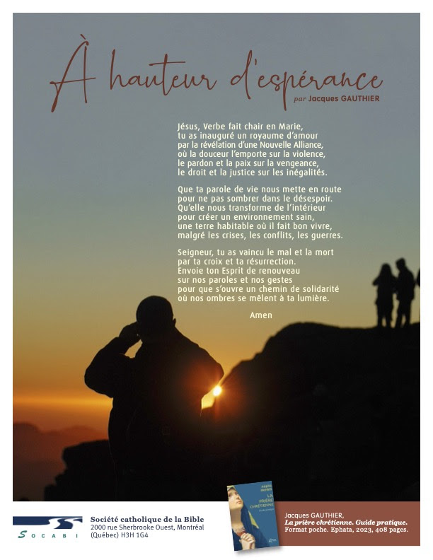 Je vous invite à débuter cette nouvelle année avec un témoignage sur la prière de mon ami Jacques Gauthier. Celui-ci nous informe que le pape François a consacré 2024 année de la prière, une manière pour les chrétiens d’approfondir leur relation au Christ et de se préparer au Jubilé de 2025 à Rome.