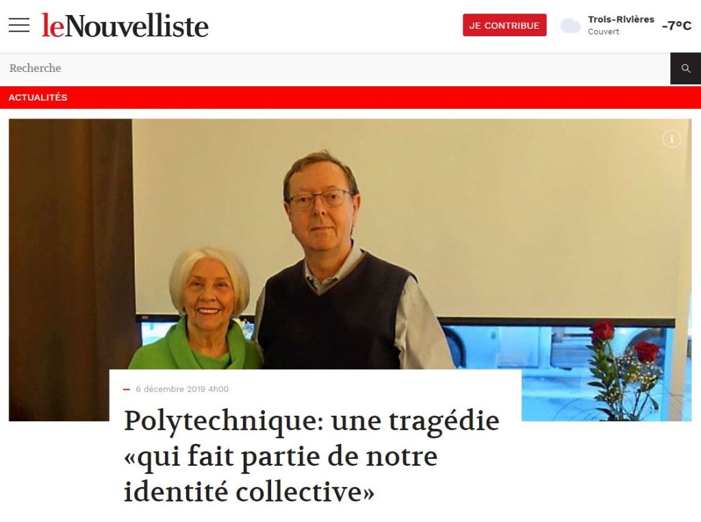 «La tragédie de Poly nous colle tous à la peau. Elle fait maintenant partie de notre identité collective. À vrai dire, c’est plus profond qu’un simple tatouage. Depuis lors, nos choix et notre détermination comme groupe social à lutter pour l’égalité hommes-femmes à tous les niveaux ont été, sont et seront encore inspirés par la tragédie de la Poly. D’où l’importance de préserver cette douloureuse mémoire», note-t-il.